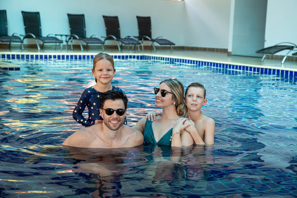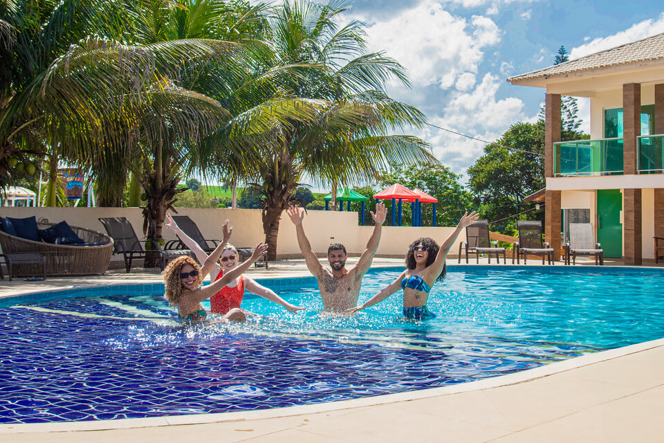 E tem mais: quem se hospeda no Por do Sol tem acesso exclusivo a três piscinas só para hóspedes: uma natural, perfeita para relaxar, e mais duas cobertas e aquecidas, ideal em qualquer clima, além de uma hidromassagem de 7 lugares.
