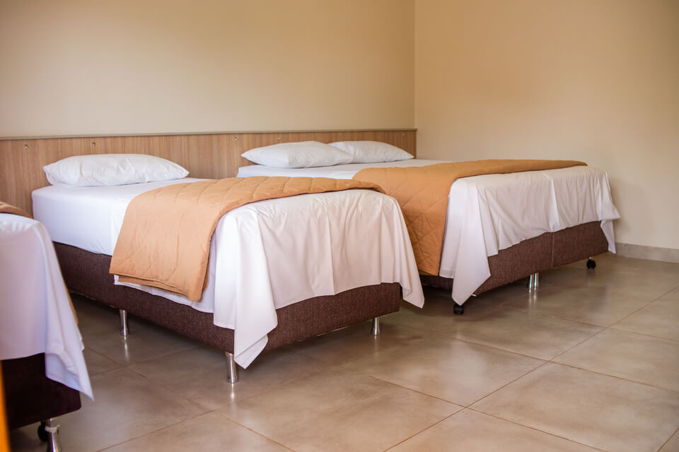 Nossos espaços foram pensados para que você e sua família descansem com conforto e aproveitem tudo o que o parque oferece. As suítes são amplas e equipadas com ar-condicionado, wi-fi, TV e frigobar.